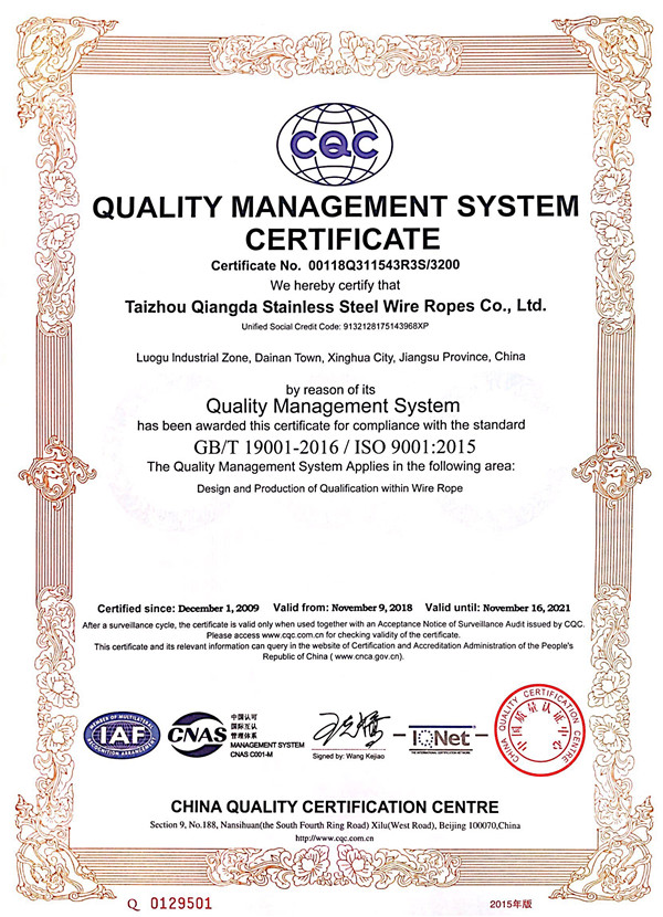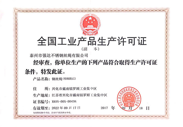 您好,歡迎訪問泰州市強(qiáng)達(dá)不銹鋼絲繩有限公司官網(wǎng)!